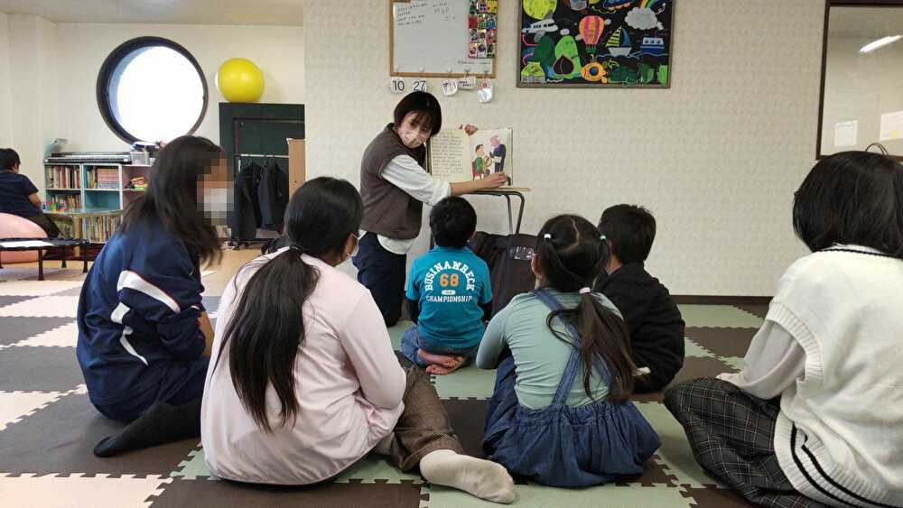 - 「今日は絵本を持ってきたよ!」と子どもたちに声をかけると、指導員のもとへ駆け寄って来る子どもが多かった。“絵本が好き、読み聞かせが好き”という子どもが一定数存在しているという実態があることを把握できた。