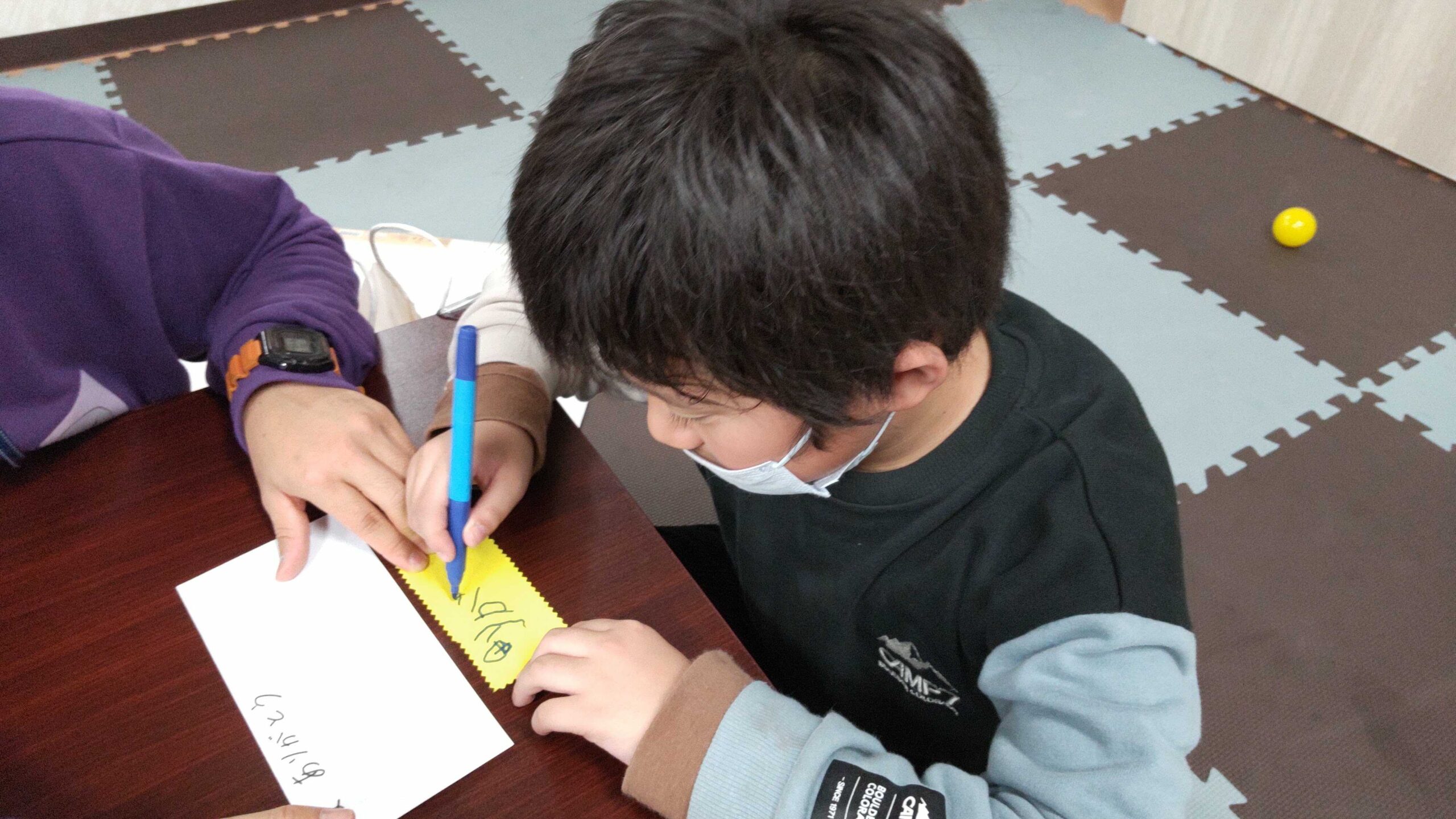 記述が難しい子はヒアリングしながら指導員が記入し、書こうか書かないか迷っている様子が見られる場合、全て肯定、自由に書いてもらう形で進めました。