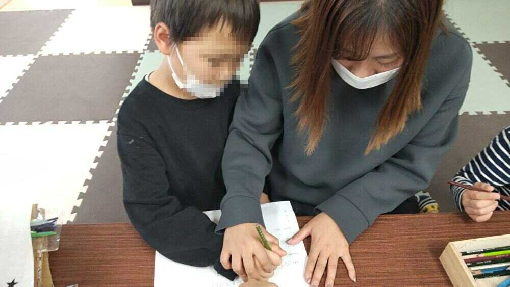 - 「〇〇君の良いところはどんな遊びでも絶対やってくれるところかな!」と言うと満面の笑みで回答をしてくれた。書字がまだできないため、指導員が書こうとすると「僕がやる」という姿勢を見せてくれて指導員と一緒に筆を握り、清書まで取り組むことができた。