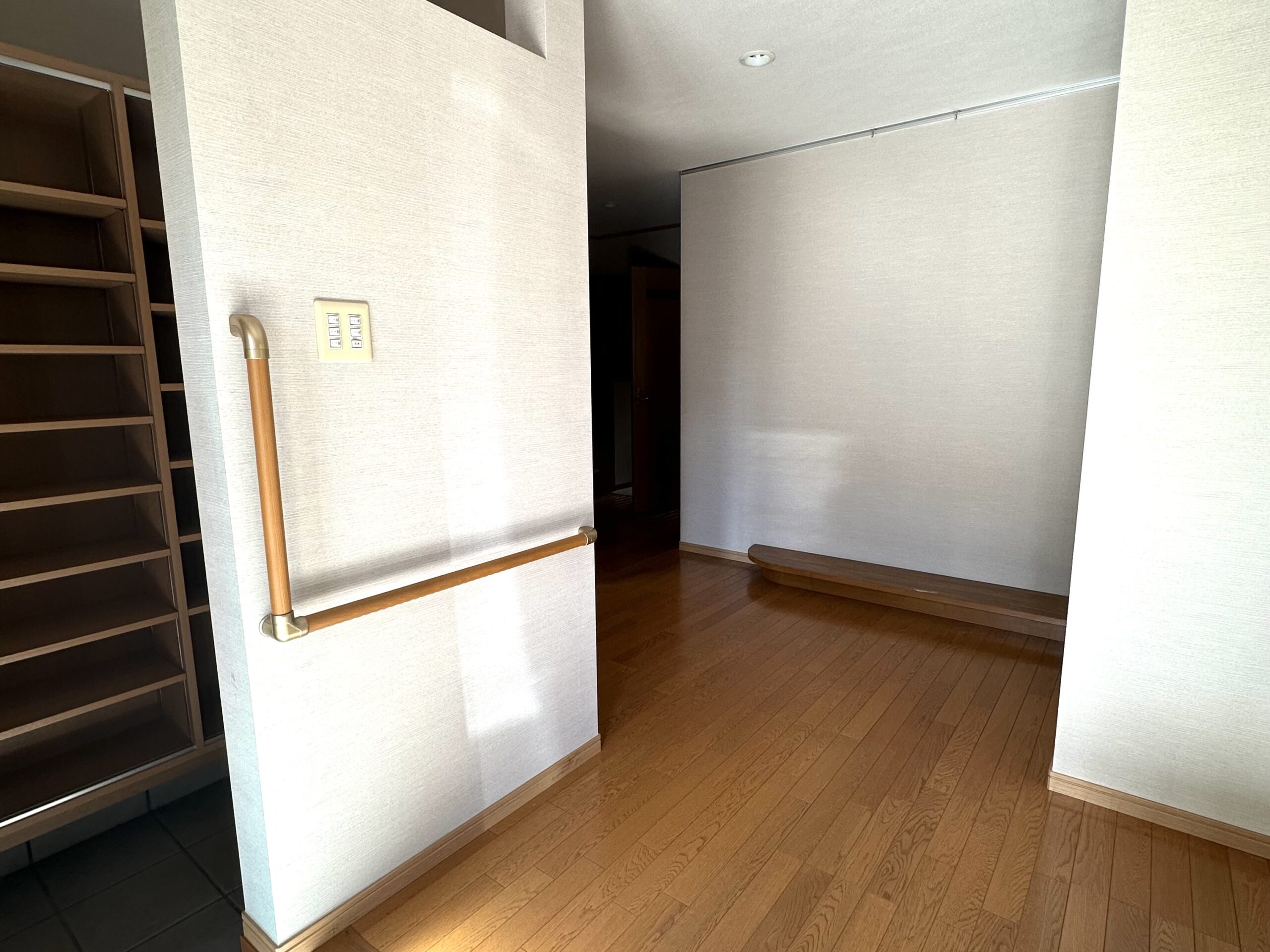 玄関口です!正面の壁に子どもたちの制作物を展示するスペースを設けます◎